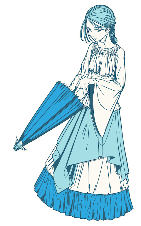 In the midst of this vortex were two 16-year-old girls who will become schoolgirls this spring. Their names are Wako and Yoko. Wako, an apprentice mizumanju maker, is obsessed with the allure of Western clothing and confections, and collects them in secret in her house. In contrast, Yoko, an apprentice kompeito maker of Russian descent, was obsessed with the allure of Japanese clothes.